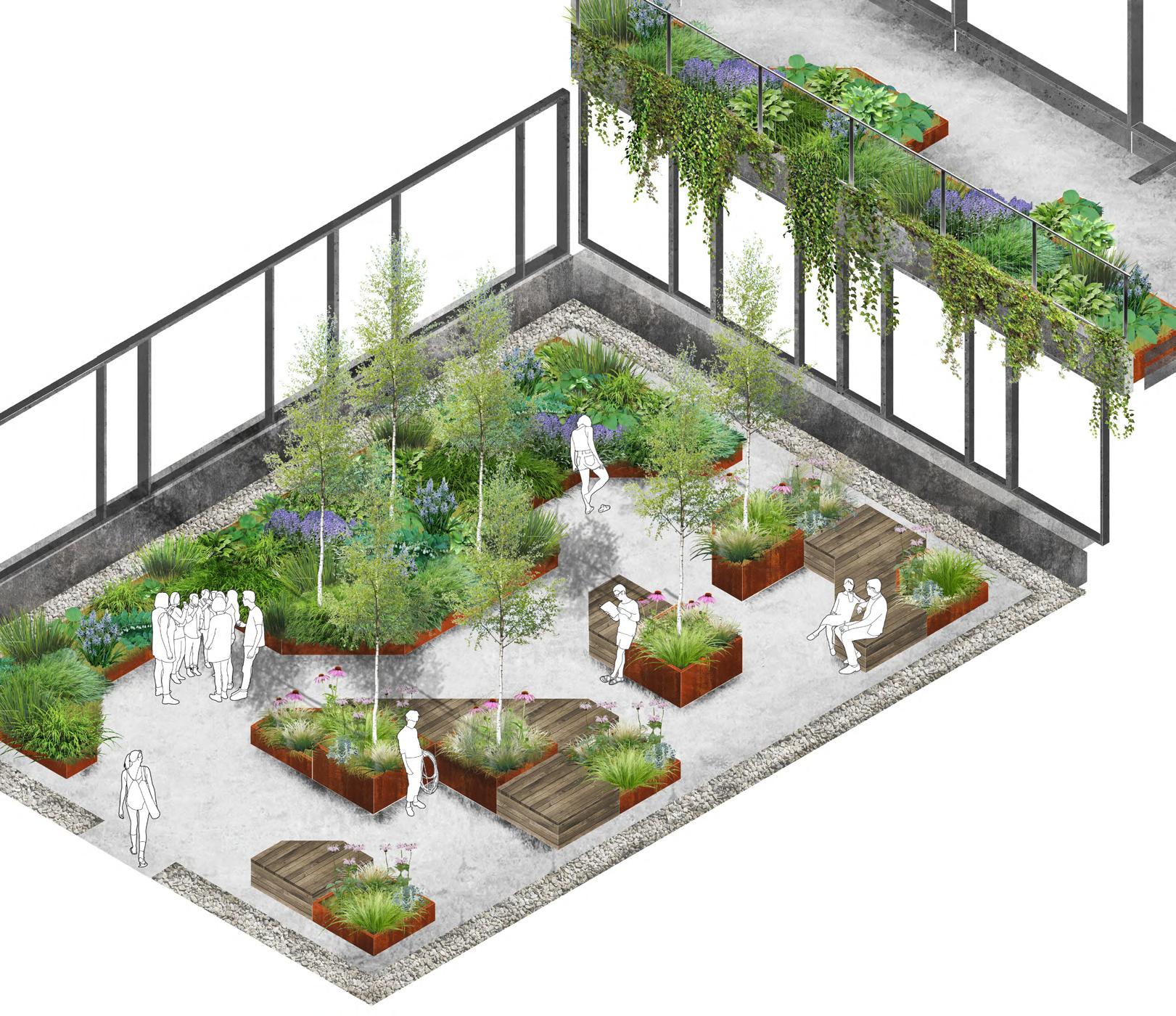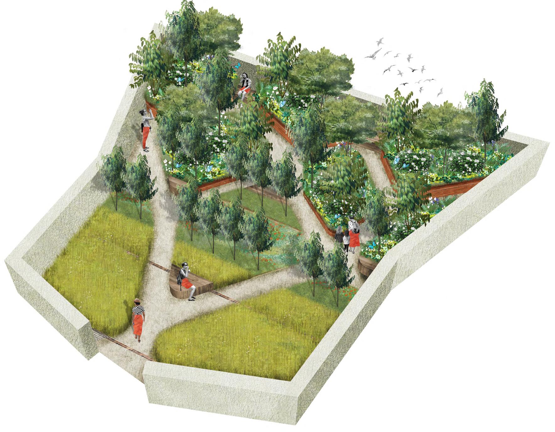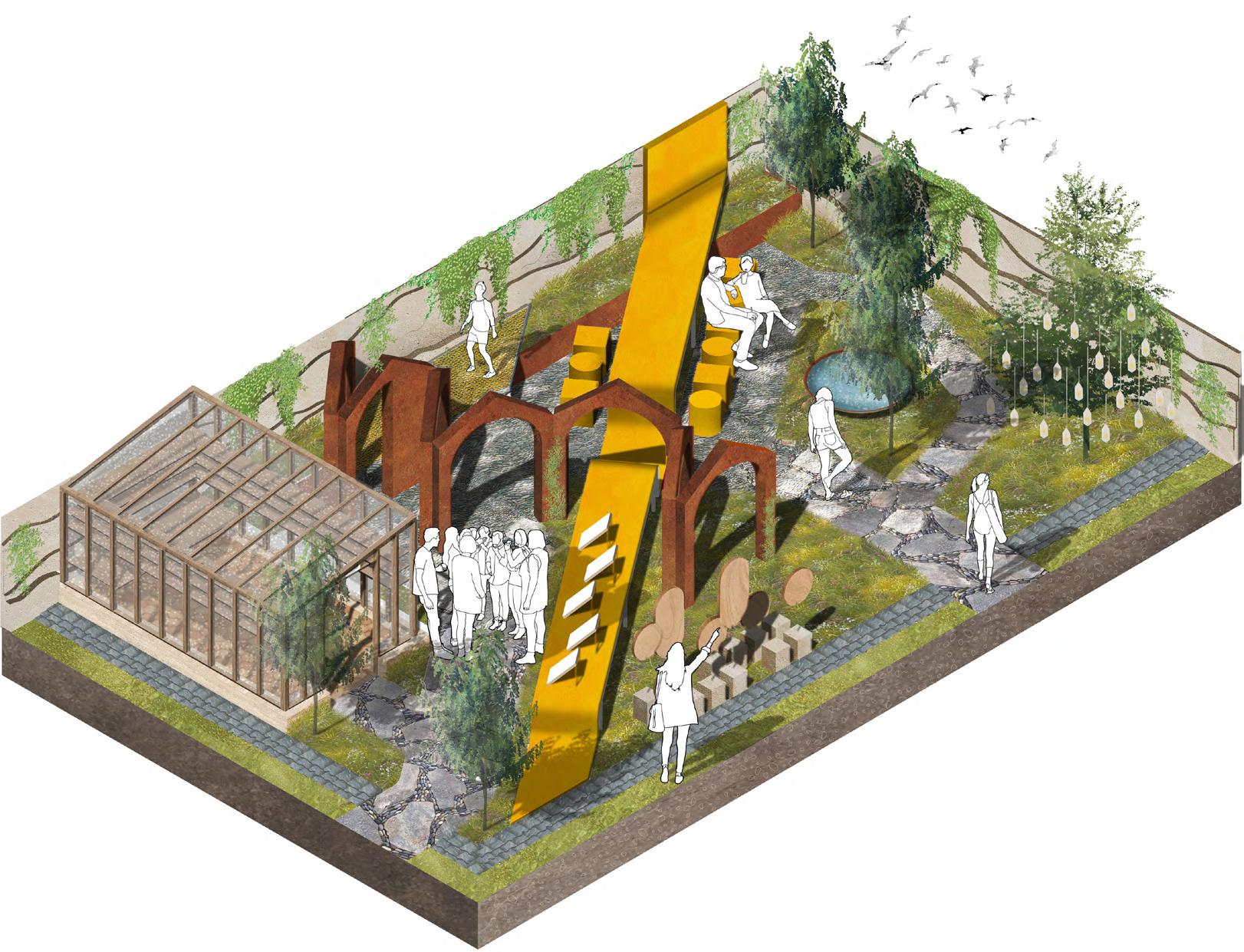 • Concept design with 2D and 3D model, selection of relevant landscape renders to illustratetheproject(axonometry,plan,sections,elevations,perspectives,etc)