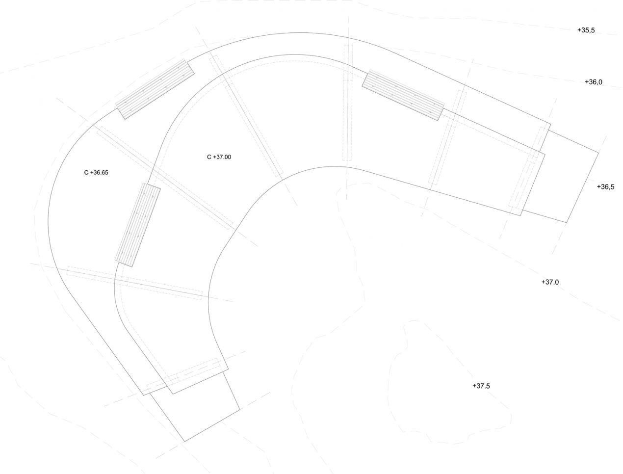 Corten steel steps pattern Elevation 1/30 3 Corten steel tree ring to the italian cypres Elevation 1/75 2 CONSTRUCTION DETAILS corten steel tree grille in two pieces circular cut for lighting tree opening ø250mm ground level frame tree grille weed stop layer 800 760 250 380 1200 760 380 Corten steel tree grilles to table top trees