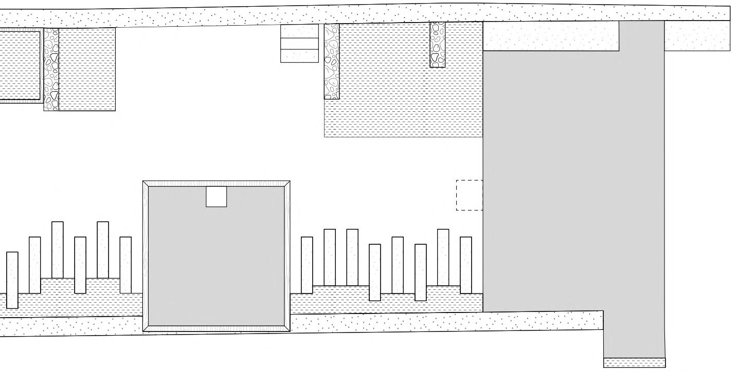 steel tree grille with dotted pattern corten steel tree grille in two pieces circular cut for lighting tree opening ø250mm ground level frame tree grille weed stop layer 800 760 380 1200 760 380 Elevation 1/50 2 Corten steel pannels to barbecue area with dotted pattern Elevation 1/30 3 Corten steel tree grille with dotted pattern tree opening ø250mm ground level frame tree grille weed stop layer 800 760 380 1200 800 760 380 Elevation