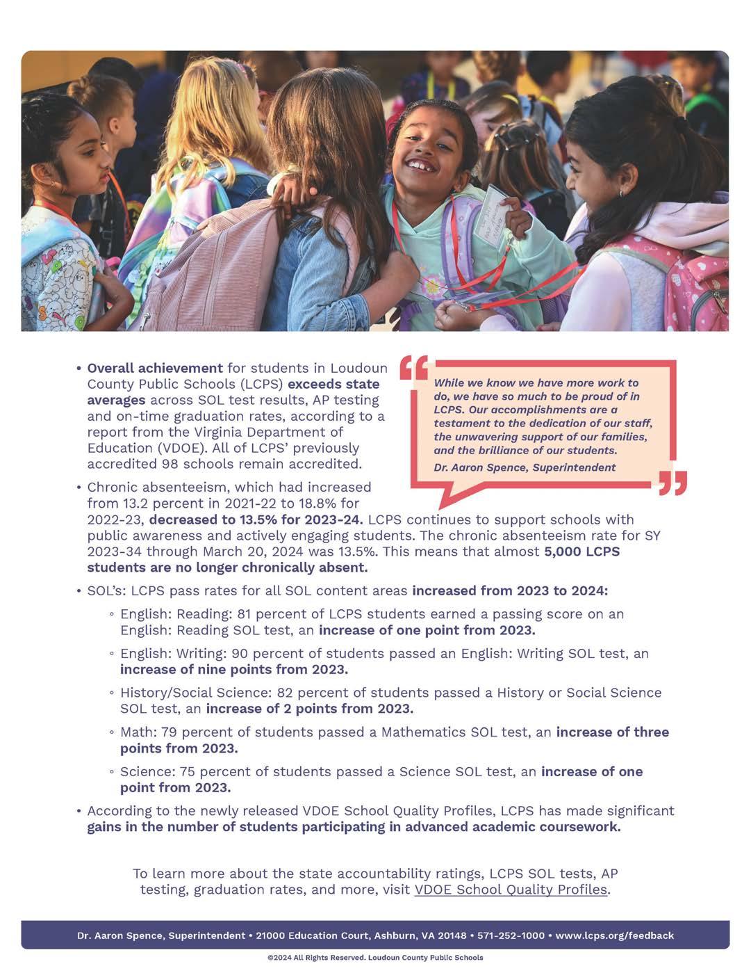 We extend our deepest appreciation to all the businesses and organizations that have generously invested their time, energy, and resources in partnering with Loudoun County Public Schools (LCPS). The 20242025 school year is guided by the theme “Together We Thrive,” which reflects the collaborative spirit and shared dedication of our community to empower, enrich, and engage students and families.