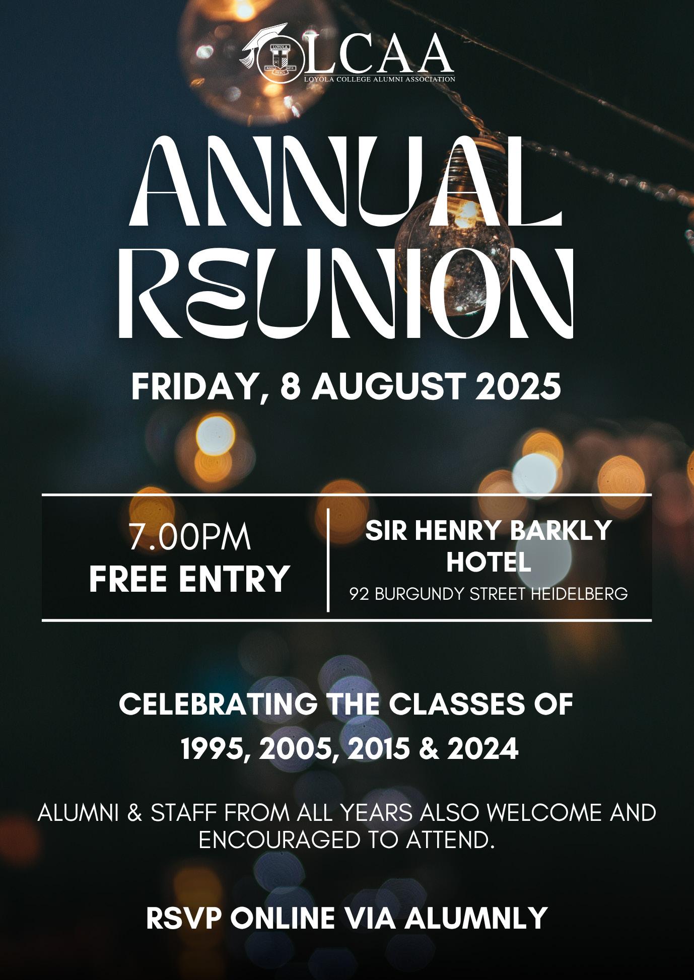 Did you know that the Loyola College Alumni Association (LCAA) generously supports external Loyola College reunions or alumni related gatherings that are co-ordinated outside of the Association?