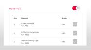 Materialliste als Bildkacheln oder als Tabelle darstellbar