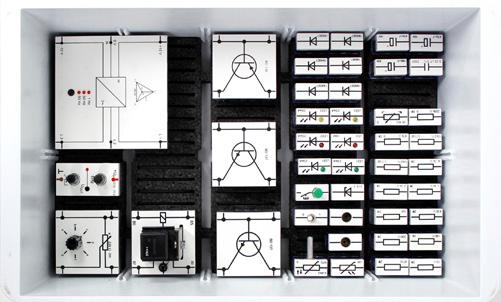 Elektrische Stromkreise, Widerstände, Kondensatoren und Spulen, Transformatoren, Relais, Dioden und LEDs, Transistoren und Thyristoren.