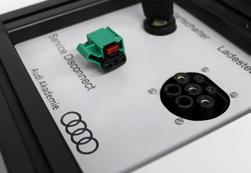 Das bietet der Hochvolt-Systemtrainer: alle HV-Komponenten aus Originalfahrzeugen, leicht zugänglich realitätsnahes Arbeiten wie Freischalten, unter vereinfachten Bedingungen überschaubarer Aufbau, der die Komplexität der HV-Technik reduziert Anwendung und Haptik wie im echten Fahrzeug