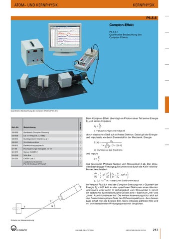 Kernphysik P6.5.6 Compton-Effekt P6.5.6.1 Quantitative Beobachtung des Compton-Effekts