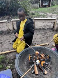 Njinga Mbandi class had a food filled day with pizza making AND smores at Forest School. We remembered our fire safety and were lucky enough to finally have a dry session to toast our marshmallows to perfection… and get sticky mouths and fingers, of course! With a sparkle in our eyes, ignited by curiosity of the fire and smoke and just loving being outside. It was a delight to be part of.
