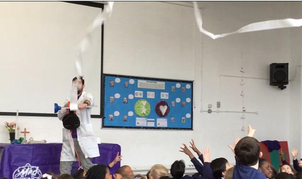 The Mad Science company came into school and started with an explosive assembly. The children were hooked straight away into the joys and wonder of science. This continued throughout the day when each class got their own individual workshops. The workshops included rockets, slimes, rocks, lights and animals.