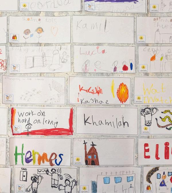 During the first two weeks of the half term, classes took part in art workshops exploring our vision to provide 'strong foundations' for all pupils. Children started by discussing the parable of the Wise Man which inspires and informs our vision, then they worked together to create a wall representing the strong foundations of learning, friendship and spirituality we build at St Ann's.