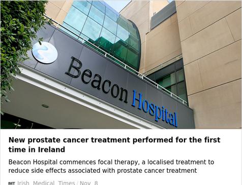 There is almost 4000 cases of prostate cancer diagnosed in Ireland each year with one in six men diagnosed in their lifetime. A new treatment for prostate cancer was successfully performed in the Beacon last month by November 2024 by Mr Mohammud Shakeel Inder and further details can be found here