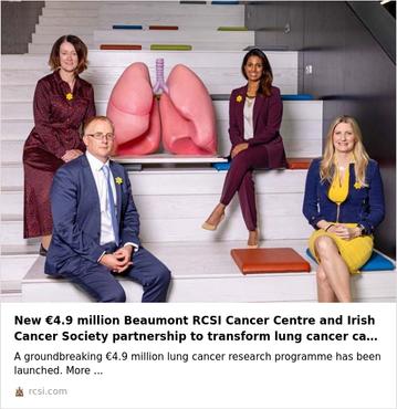 On 30th October 2024, a €4.9 million partnership was announced between RCSI Cancer Centre and the Irish Cancer Society to tackle lung cancer. Further details on the pilot programme can be found here