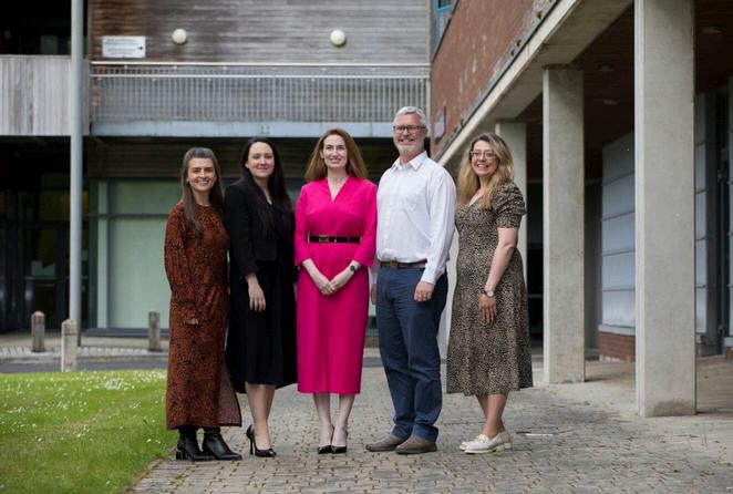 Lefttoright:DrCiaraLeahy(PhDStudent, SchoolofMedicine),MsChristinaFleming (ColorectalSurgeryConsultant,UHL),DrMáire Lavelle(LeadBreastHistopathologist,UHL)Dr KieranMcGourty,(LecturerandPrincipal Investigator,DepartmentofChemicalSciences, UL)DrAmiraMahdi(AssistantProfessorof BiomedicalSciences,SchoolofMedicine)