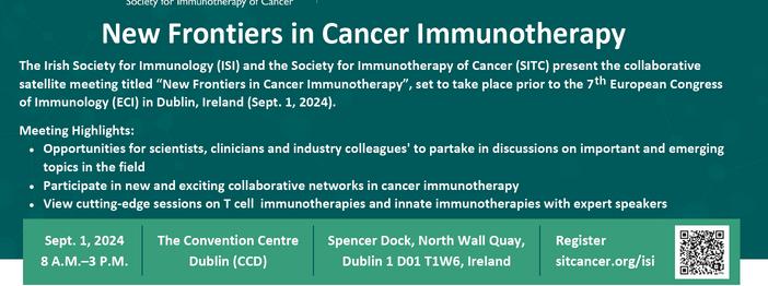 TheEuropeanImmunology MeetinginDublinincludea meetingonSundaySept1st–withseparateregistrationon cancerimmunotherapy (JamesAllisonisaspeaker),