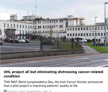 This three-year pilot project, lymphoedema early detection service at UHL is the only one of its type in an acute hospital outside of Dublin