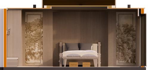 Selected the FF&E, materials, and finishes for walls, ceilings, floors, and custom built-in storage.