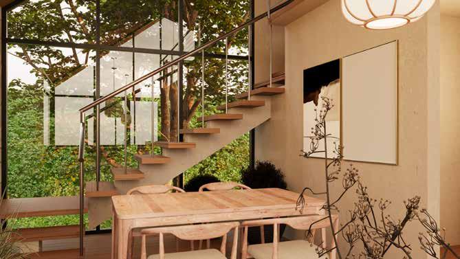 Los acabados, con una cuidadosa elección de materiales en tonos neutros, combinados con una estructura expuesta, brindan una estética auténtica que se integra a la perfección con el entorno.