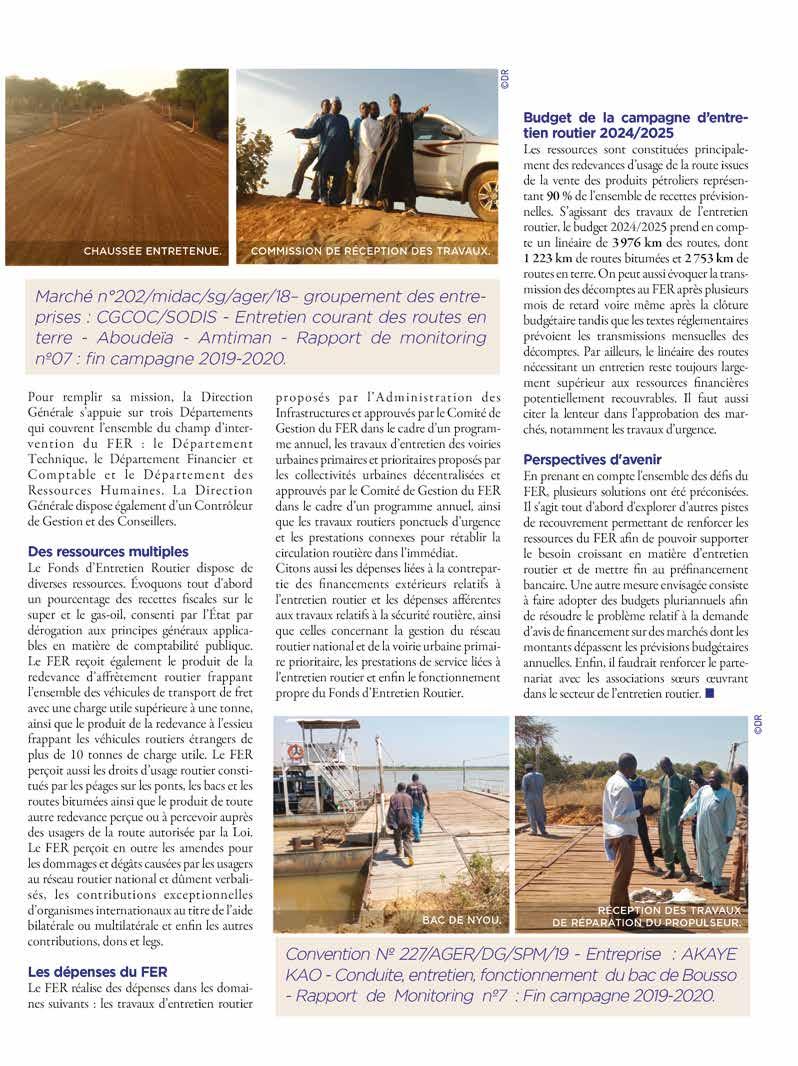 Le FAGACE a soutenu des projets d’infrastructures rurales, notamment la construction de routes et l’amélioration des infrastructures logistiques pour faciliter l’accès aux