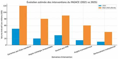 Le FAGACE devrait intensifier le financement de projets d’électrification rurale par mini-réseaux solaires, afin de renforcer l’accès à l’électricité dans les zones isolées et promouvoir l’utilisation des énergies renouvelables pour réduire la dépendance au réseau national. La promotion de l’énergie solaire dans les secteurs résidentiels et industriels pourrait également être un domaine de développement important, notamment pour améliorer l’autonomie énergétique des entreprises et des ménages.