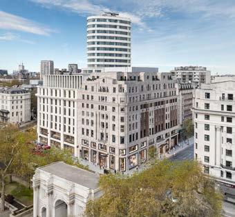 40 1 Marble Arch and 1 Great Cumberland Place is owned and managed by The Portman Estate. The redevelopment of the corner site was planned and implemented between 2013 and 2022 with architects Allford Hall Monaghan Morris, to offer high-end retail and office space. The initial solution for which the scheme first received planning approval in 2016 was to retain as much of the existing structure as possible whilst extending the building vertically with the introduction of new floors. However, since the core configuration of the existing building was inadequate for contemporary uses, a new core had to be introduced to meet the needs of a modern building. However, the constraints of the existing structural grid meant that almost half of the floor plate would need to be rebuilt. The complexity of this structural intervention, as well as the lack of survey information, led the team to change their approach to a façade retention scheme. The existing structure was demolished, and a new steel frame structure was constructed. Retrospectively, the project team believes that a full redevelopment approach, without the façade retention, would have resulted in lower upfront carbon emissions. This is due to defects found in the façade as works progressed, which added significant complexity, additional material, detailing and workmanship to the façade retention element and the extensive and complex structural steel support system to prop the retained façade, (Source: ‘The nuts and bolds of regenerative design: 1 – 4 Marble Arch” (AKT II, Consulting Structural and Civil Engineers, August 2022)
