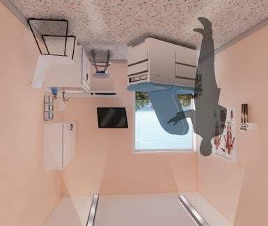 Catherine Trugman| GSU| Collaborative Healthcare Project| Digital Rendering Perimeter Urgent Care Clinic Reception Perspective Corridor Elevation Patient Room PerspectiveThe main concept of this innovation is the scandinavian aesthetic with fresh white walls. These eco-friendly spaces were composed of mostly natural white oak wood furnishings. Hardwood floorings along with a concrete area. There is silver plated and steel metallic finishes and some accents of blue hues and muted colors. The design includes the a Reception, Laptop Room, and Collaborative Workspace Areas. Consistency was kept throughout the color palettes and materials to enhance visual appeal.
