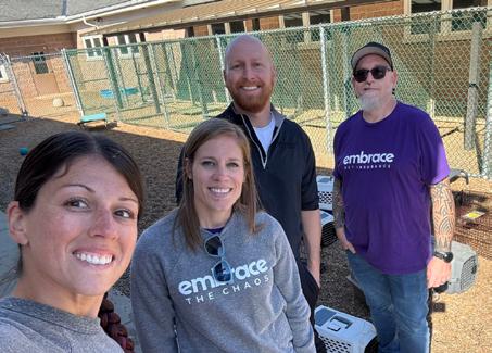 Our Embrace team loves volunteering at Rescue Village, a nonprofit animal shelter dedicated to rescuing and rehoming pets in need. They lent a hand by cleaning bowls, folding laundry, tidying kennels, and organizing the space—all while enjoying time with the animals!