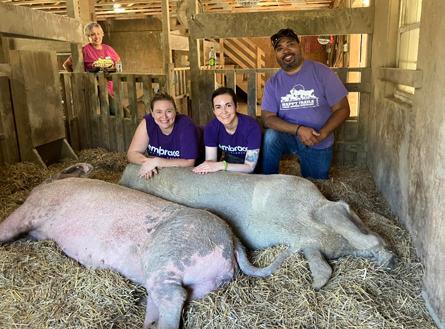 To kick off EmbraceCLE 2024, Embrace staff and participating nonprofits came together for a day of volunteerism at Happy Trails Farm Animal Sanctuary, lending a hand to support rescued farm animals and their care.