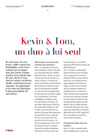 Kevin & Tom, un duo à lui seul Ils sont beaux, ils sont jeunes, taillés comme des bodybuilders et ils n’ont vraiment pas la langue dans leur poche. Chaque mardi et mercredi du mois de mars, Kevin et Tom font les zouaves au théâtre Apollo, enchaînant les personnages, les quiproquos et les tours de chant pour le plus grand plaisir des spectateurs.