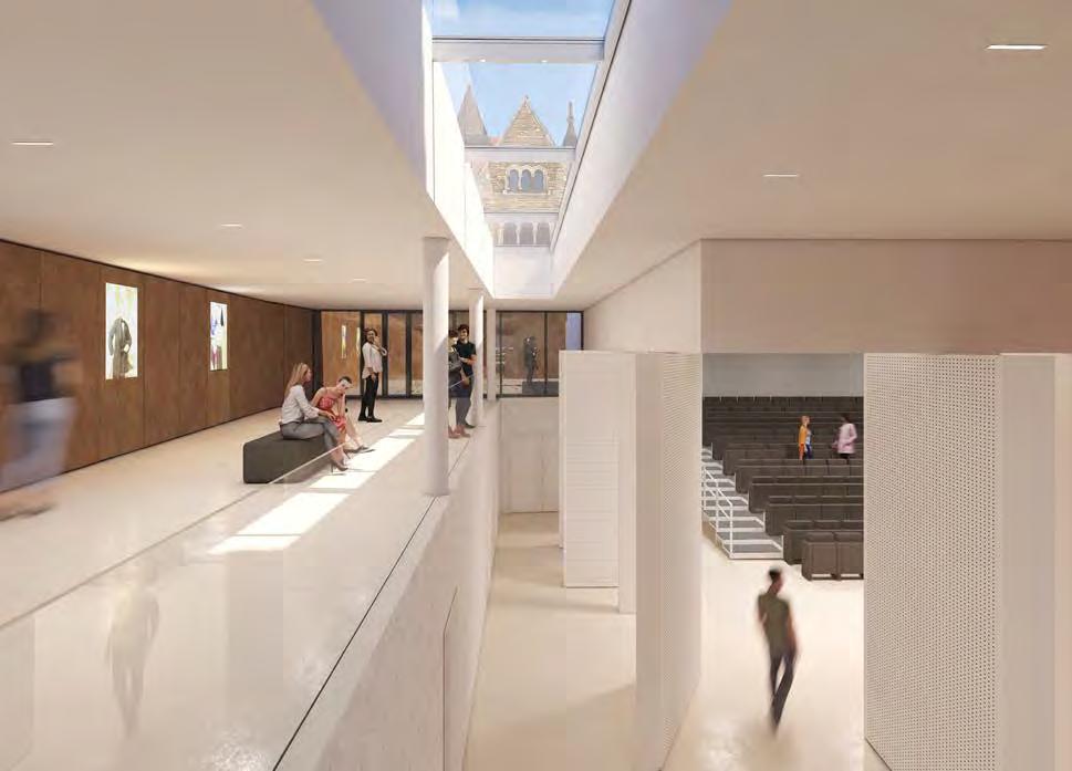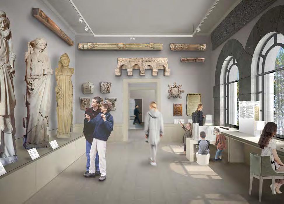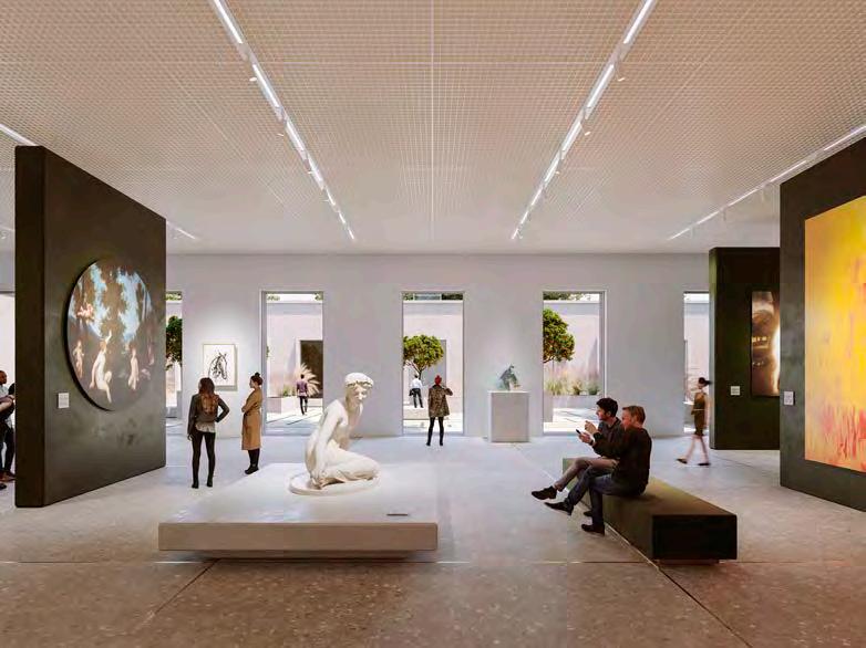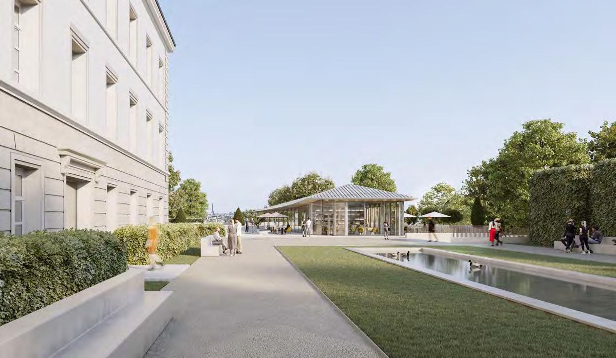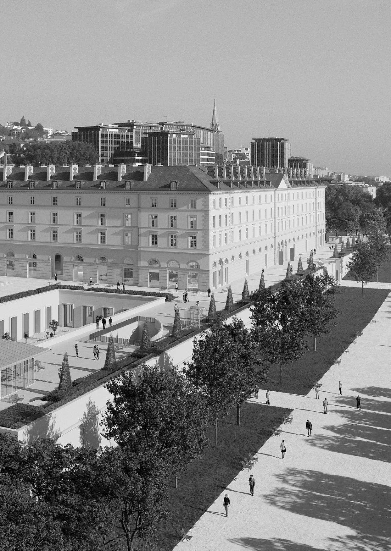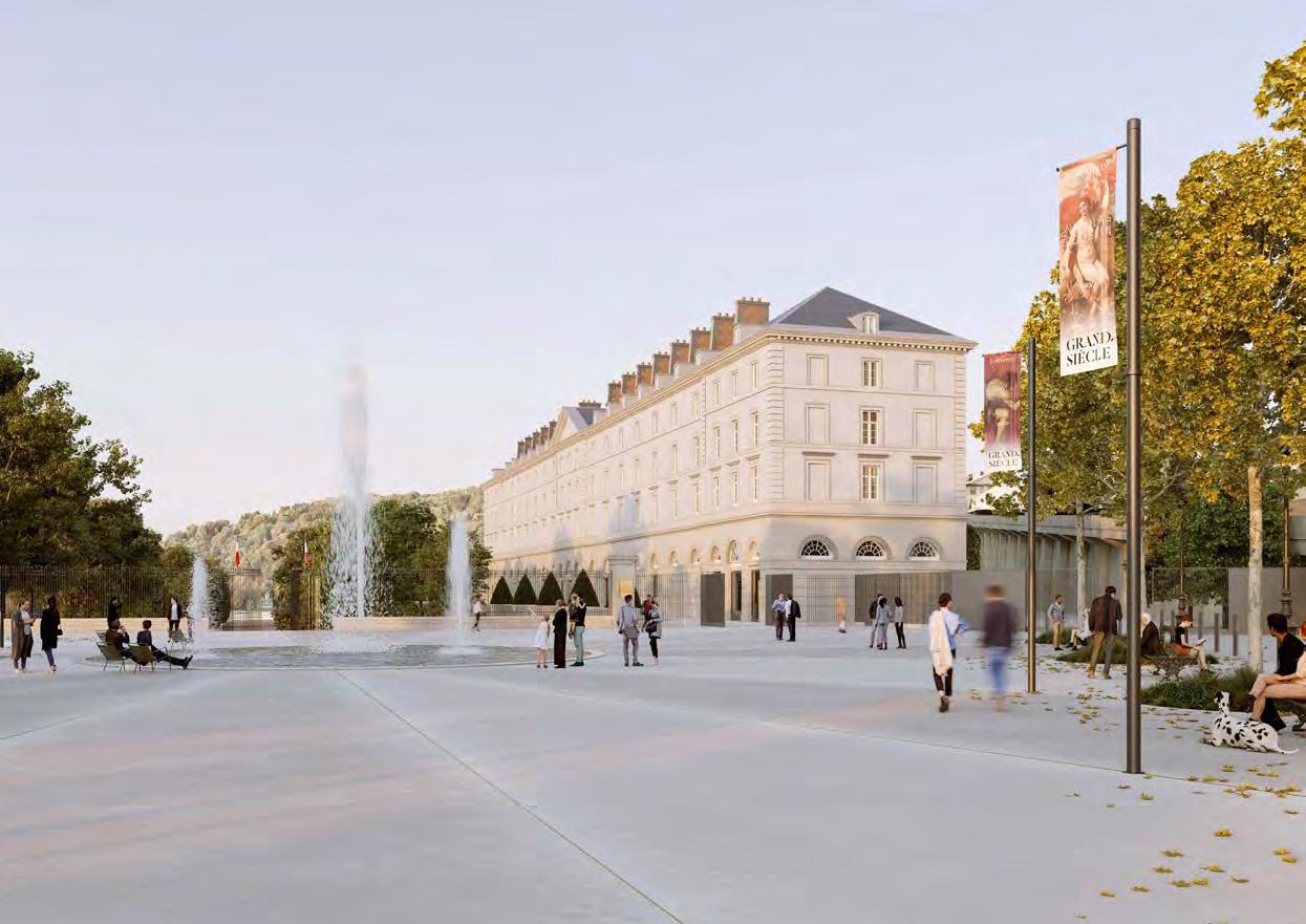 Rénovation des bâtiments existants, privilégiant un usage d’exposition pour la Caserne de Sully et d’un centre de Recherche dans le Pavillon des Officiers. Création d’un socle enterré avec une cour carrée autour de laquelle s’organise les espaces d’exposition temporaires, des salles immersives, l’auditorium, des espaces logistique et de traitement des oeuvres et un parking. Deux pavillons viennent ponctuer le parcours abritant un restaurantion, un café et un espace de diffusion. Le projet prévoit également la revalorisation complète des espaces extérieurs.