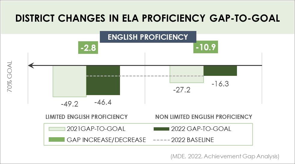 • Have 70% of English learners making expected progress toward English language proficiency by 2025 (MDE, 2022)