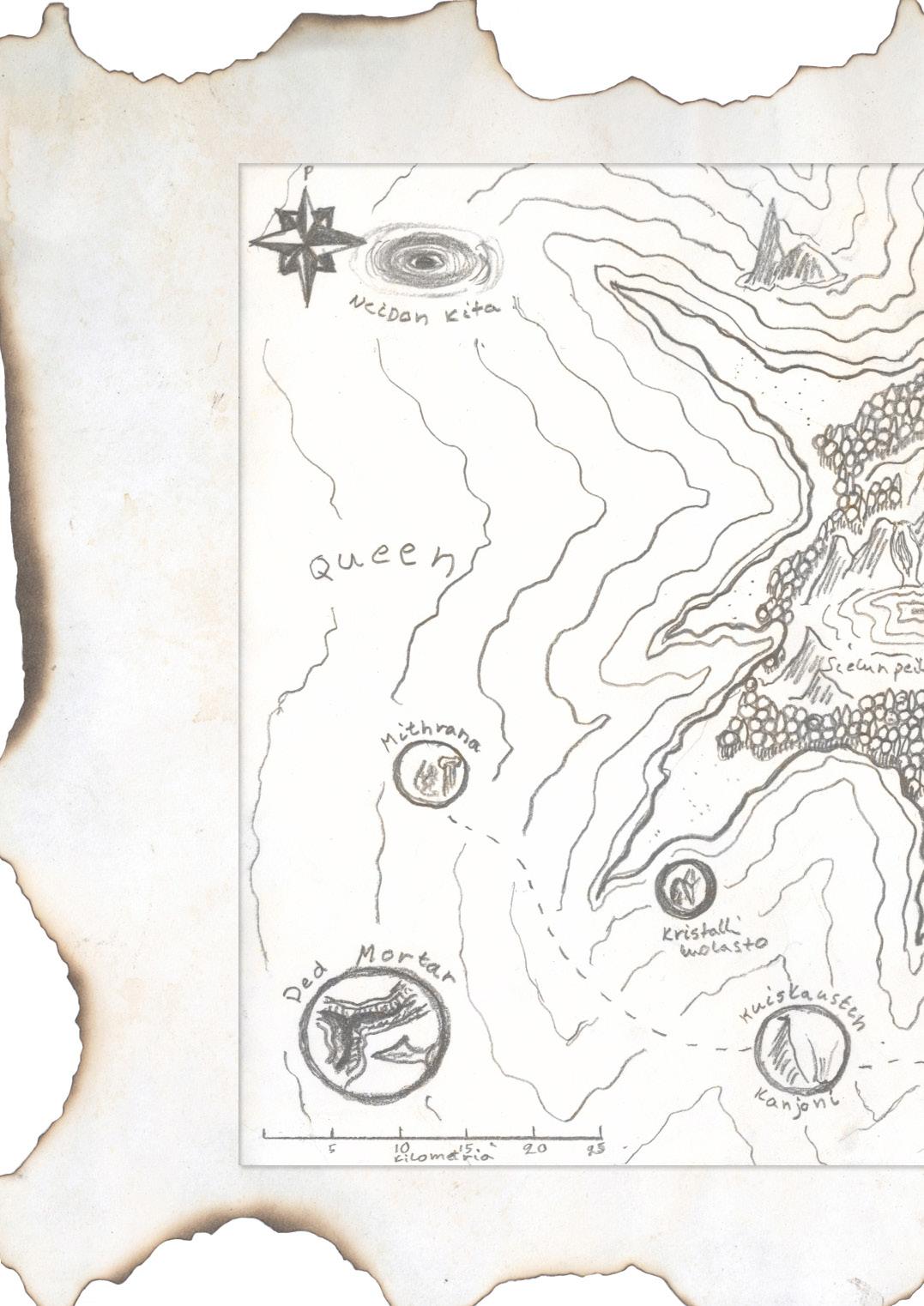 Lohikäärme laskeutui kyljelleen ja muokkautui lattiaan kohokuvaksi. Shean kumarsi ja palasi vuoteelleen aamun sarastaessa. Esae htiw drauq.