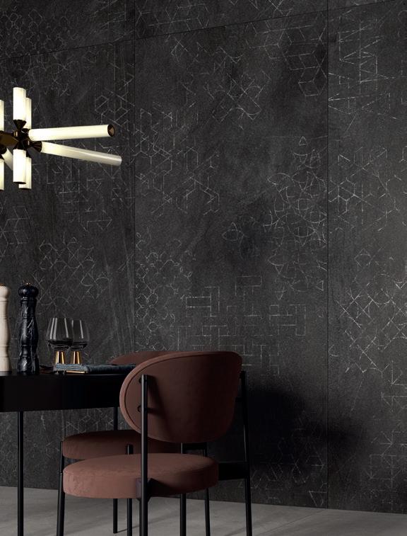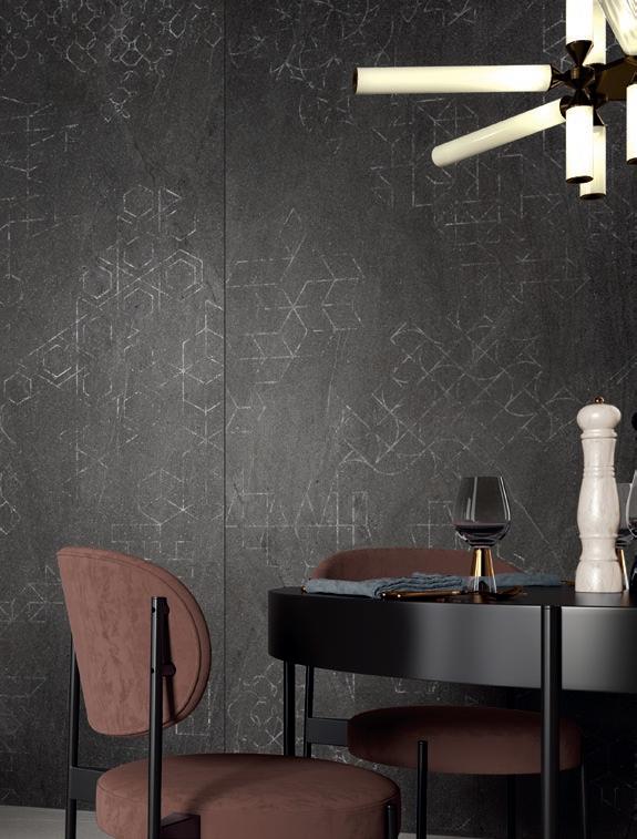 In questo decoro eclettico e discontinuo tracce di pattern geometrici affiorano dalla pietra, evocando graffiti rupestri che sembrano provenire dal futuro. Disponibile in grandi lastre Slimtech e in tre colori, Graf contamina in modo creativo lo spirito minerale della collezione con codici prettamente umani.