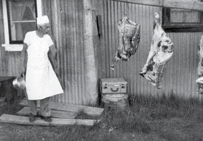 Roundup Crew at Hay Lake around 1937. Includes Ernest and Evelyn Chilson, Ernest’s brother Don, and father “Boss” Chilson.
