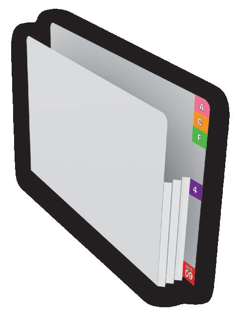 The unique hinged back gives KolorKode labels the flexibility to stick securely to the file without peeling back or ‘butterfly winging’.
