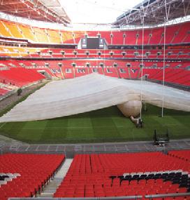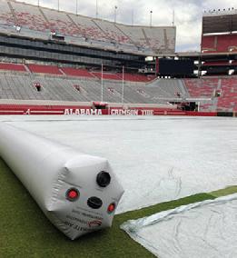 An INFLATABLE FIELD COVER allows for ongoing field maintenance during periods of inclement and extreme cold weather.