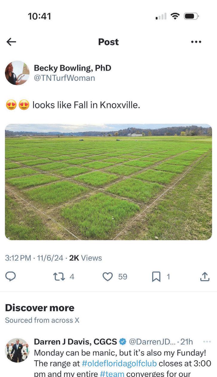 The Tennessee Turfgrass Association serves its members in the industry through education, promotion and representation. The statements and opinions expressed herein are those of the individual authors and do not necessarily represent the views of the association, its staff, or its board of directors, Tennessee Turfgrass Magazine, or its editors. Likewise, the appearance of advertisers, or Turfgrass Association members, does not constitute an endorsement of the products or services featured in this, past or subsequent issues of this quarterly publication. Copyright © 2024 by the Tennessee Turfgrass Association. Tennessee Turfgrass is published bi-monthly. Subscriptions are complimentary to members of the Tennessee Turfgrass Association. Third-class postage is paid at Jefferson City, MO. Printed in the U.S.A. Reprints and Submissions: Tennessee Turfgrass allows reprinting of material. Permission requests should be directed to the Tennessee Turfgrass Association. We are not responsible for unsolicited freelance manuscripts and photographs. Contact the managing editor for contribution information. Advertising: For display and classified advertising rates and insertions, please contact Leading Edge Communications, LLC, 206 Bridge Street, Suite 200, Franklin, TN 37064, (615) 790-3718, Fax (615) 794-4524.