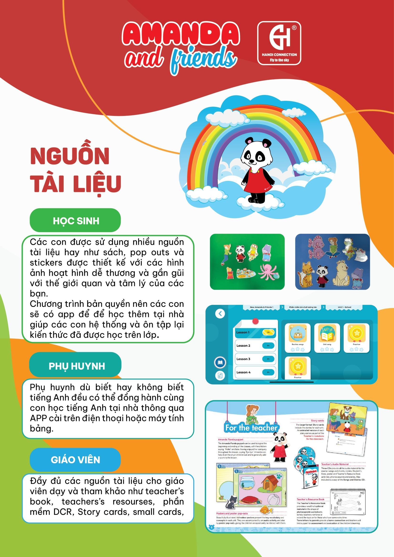 Các khóa học tiếng Anh mầm non tại Leading Stars sử dụng tài liệu nội bộ cùng với bộ giáo trình Amanda & Friends, giáo trình chuyên biệt dành cho lứa tuổi mầm non 3 - 5 tuổi đã được sở Giáo Dục và Đào Tạo thẩm định công văn 2441/GDDT-MN. Đã được triển khai áp dụng cho nhiều trường mầm non công lập. Các khóa học giúp các em phát triển năng lực cốt lõi và xây dựng cũng như hoàn thiện các loại hình trí thông minh : Trí thông minh ngôn ngữ, tư duy sáng tạo, kĩ năng vận động, kĩ năng giao tiếp, kĩ năng hoạt động đội nhóm...