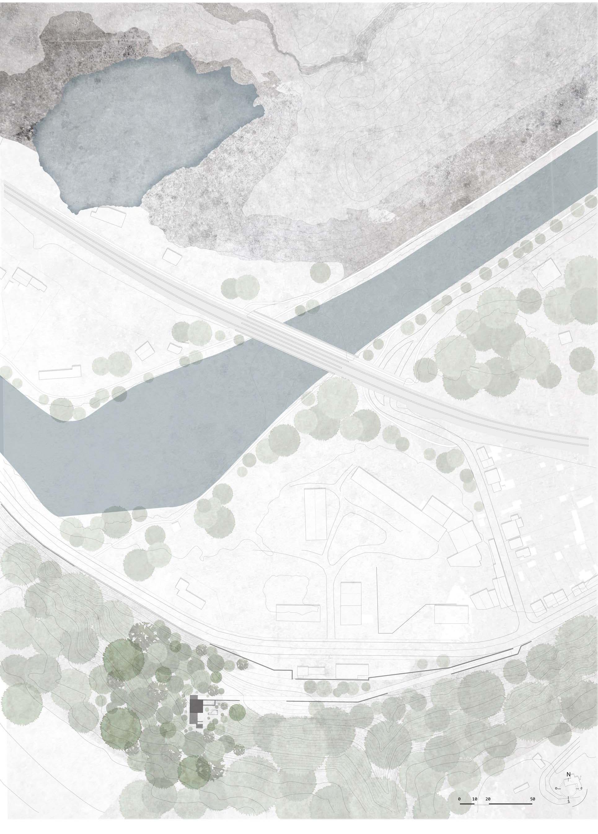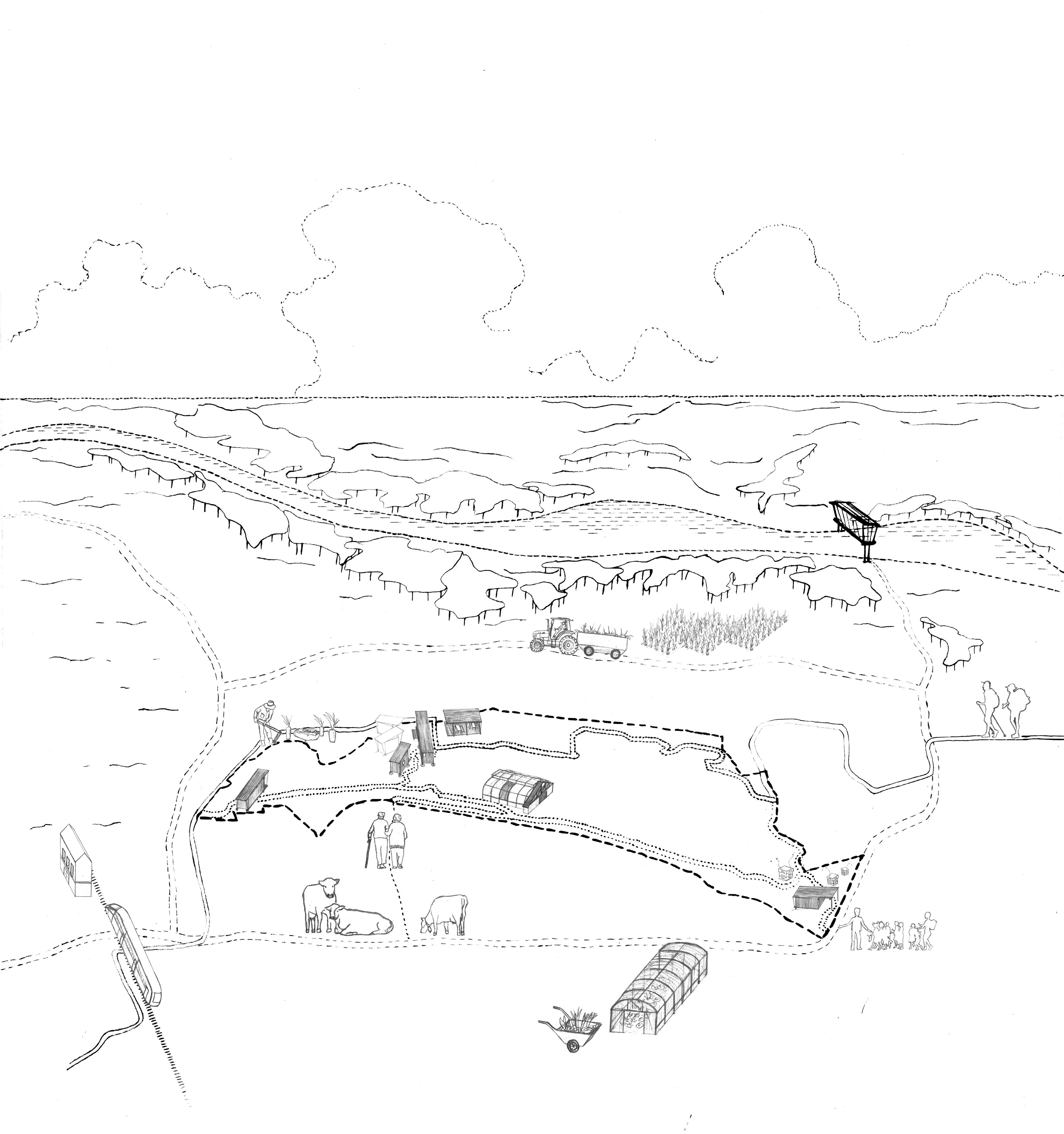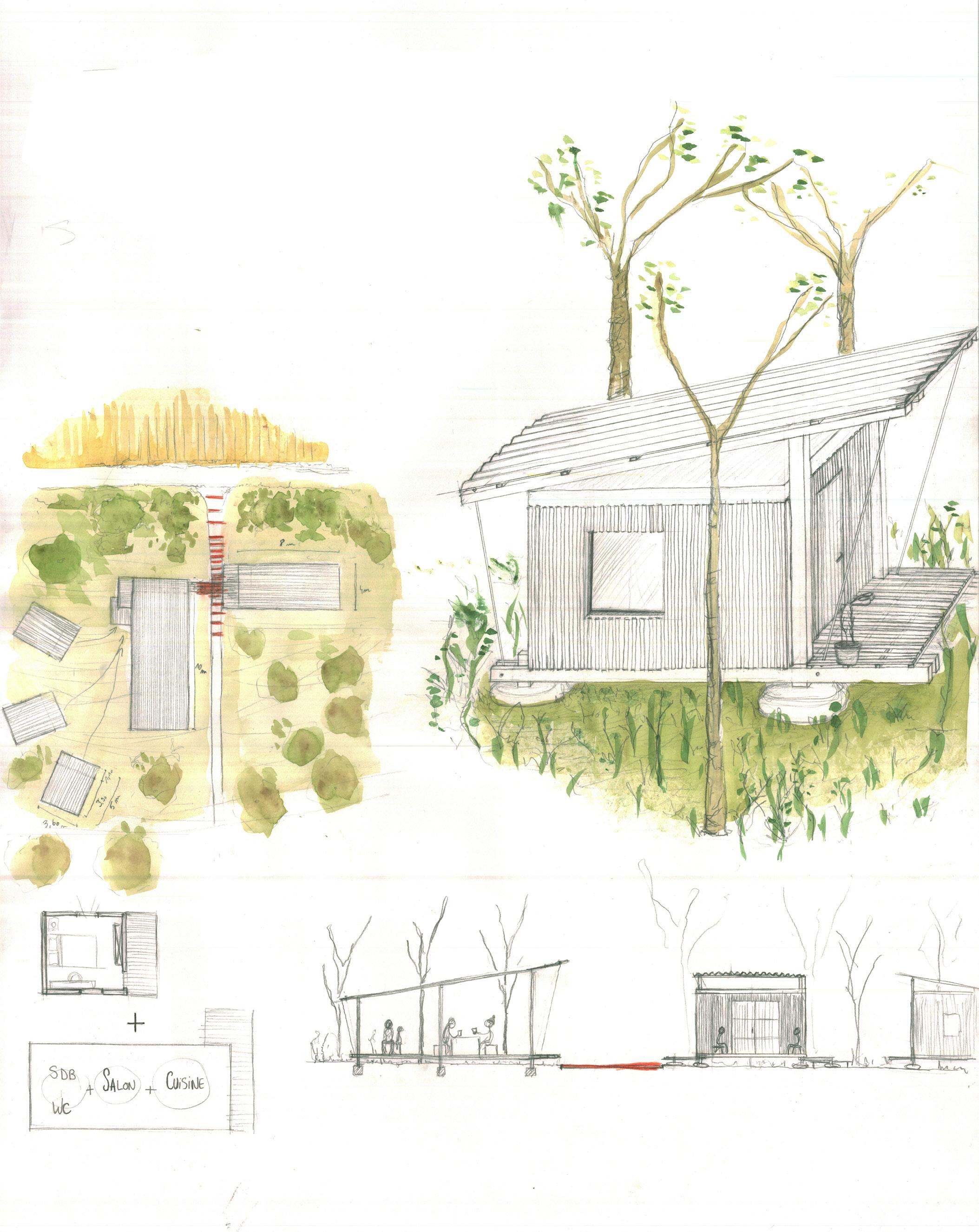 La révélation du tissu relationnel du bois s’appuyait sur une programmatique travaillant sur son écotone; c’est-à-dire des interventions de signalétique de randonnées, des entrées/sorties marquées par des occupations temporaires (liées à des besoins et des contraintes). Telles que des modules en construction légère, portant sur une réflexion des matériaux et de l’impact sur l’environnement; ainsi que sur une dimension sociale. Le dessein de la gestion et du maintien de cette zone protégée comprenait une proposition partenariale professionnelle d’insertion sociale.