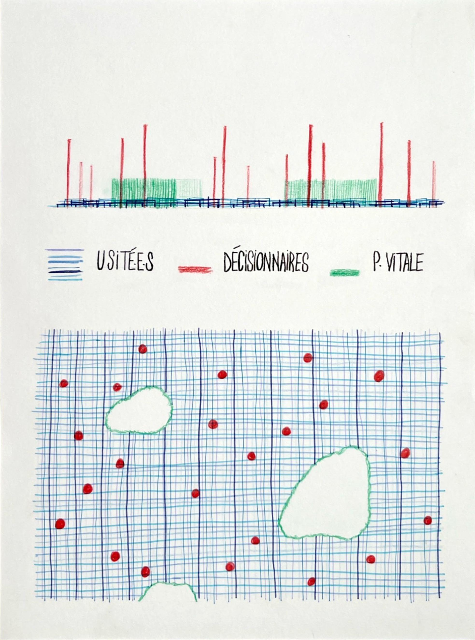La première phase du projet consistait à créer un manifeste “fil conducteur” de la philosophie du projet par la suite. Dans celui-ci, le bois devient “poche vitale”, symbole d’une résistance sociale face à des problématiques rencontrées dans notre société actuelle mais poussées à l’extrême (inégalités sociales, réduction de l’espace privatif et de sa qualité, pollution …).