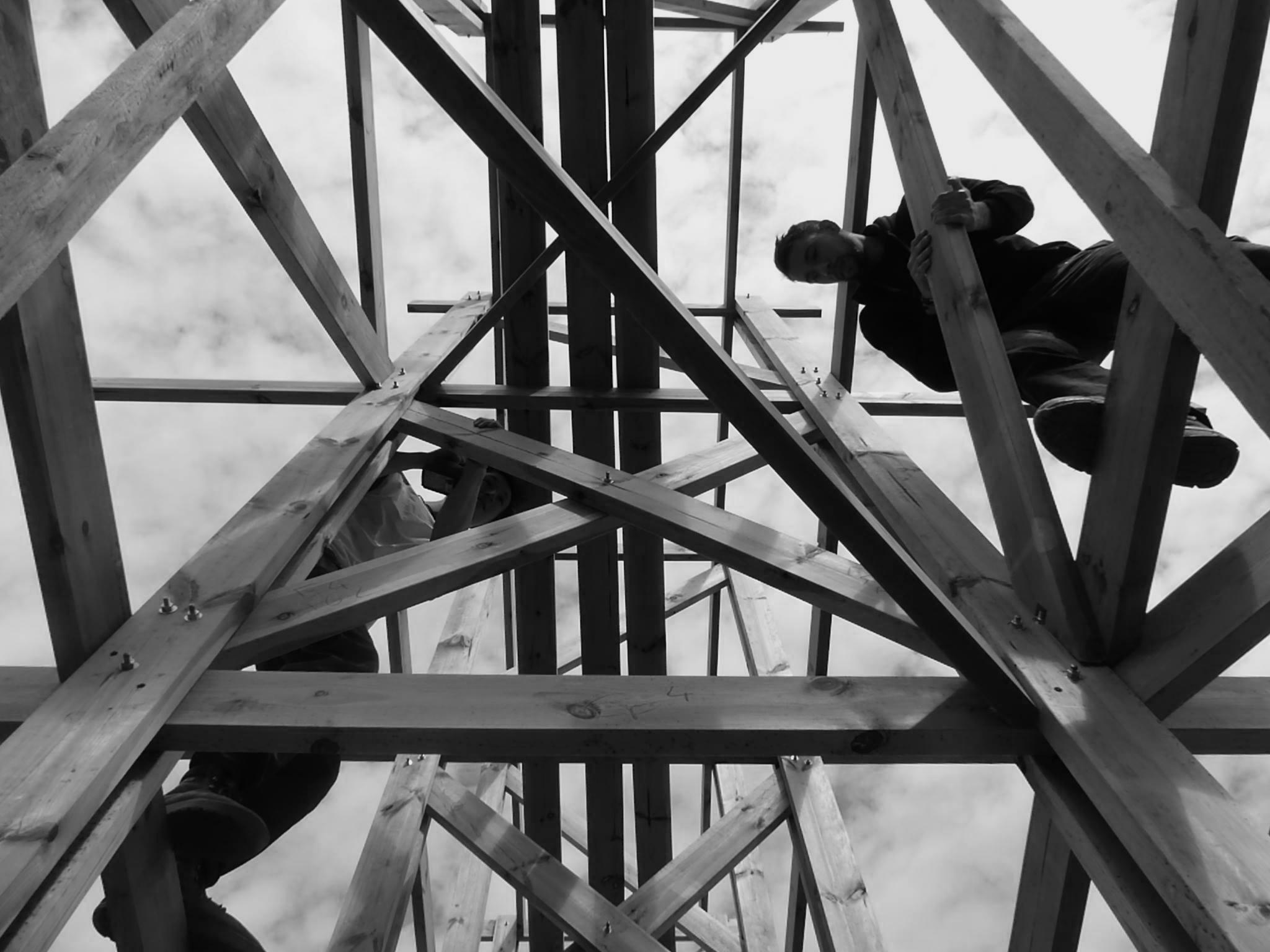 Participation à un chantier participatif de la cabane studio pour une radio indépendante queer «Radio Vacarme». Installation dans la cour de Illegaal, Bruxelles, Belgique