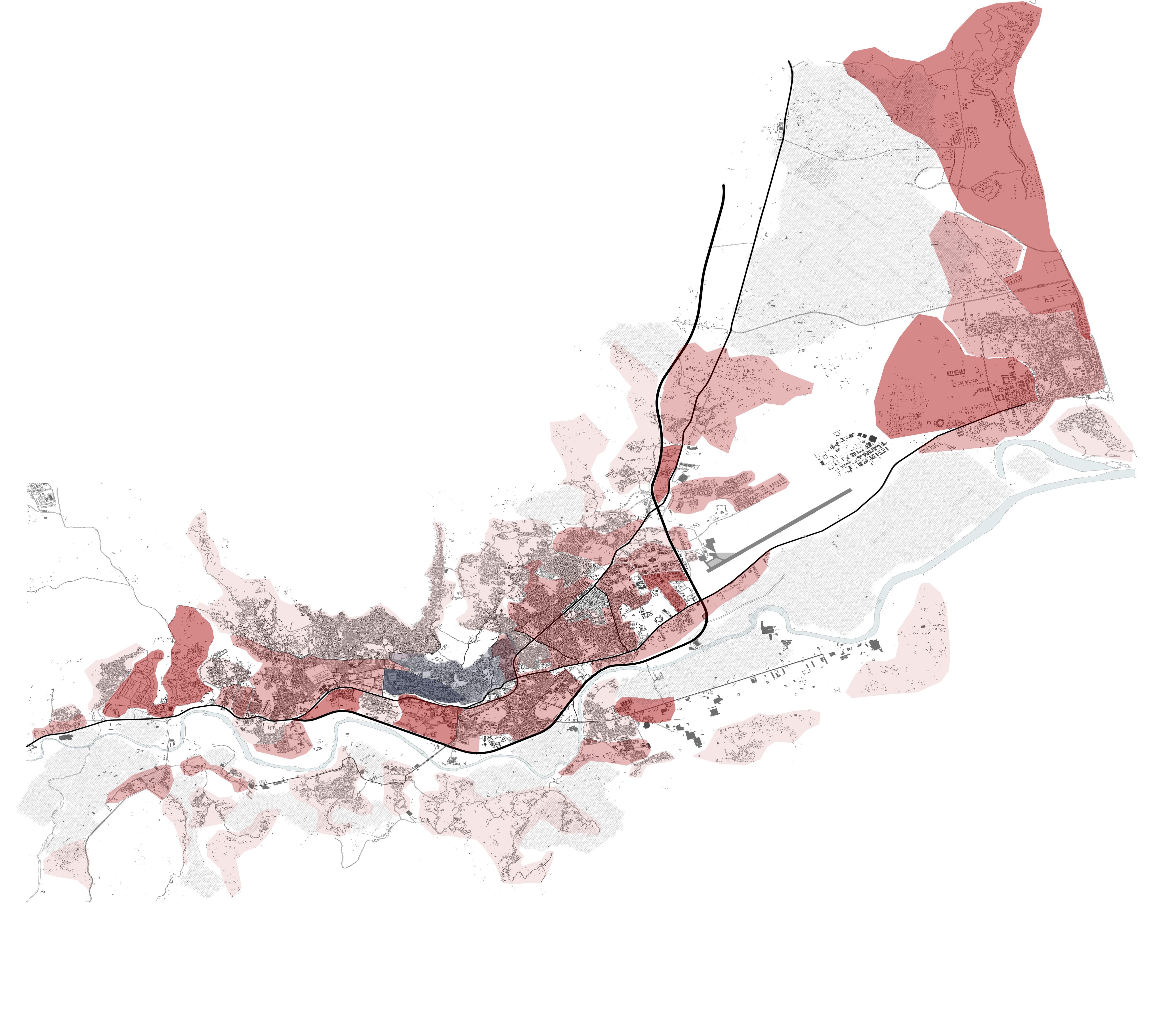 Au vu de l’échelle de celle-ci et du développement des infrastructures non-officielles autour de l’aéroport, ce projet relevait d’une planification urbanistique: un programme travaillant les voiries, l’activité économique et locale des logements et une régularisation de ces quartiers informels et l’aménagement d’espaces publics (parc et équipements sportifs).