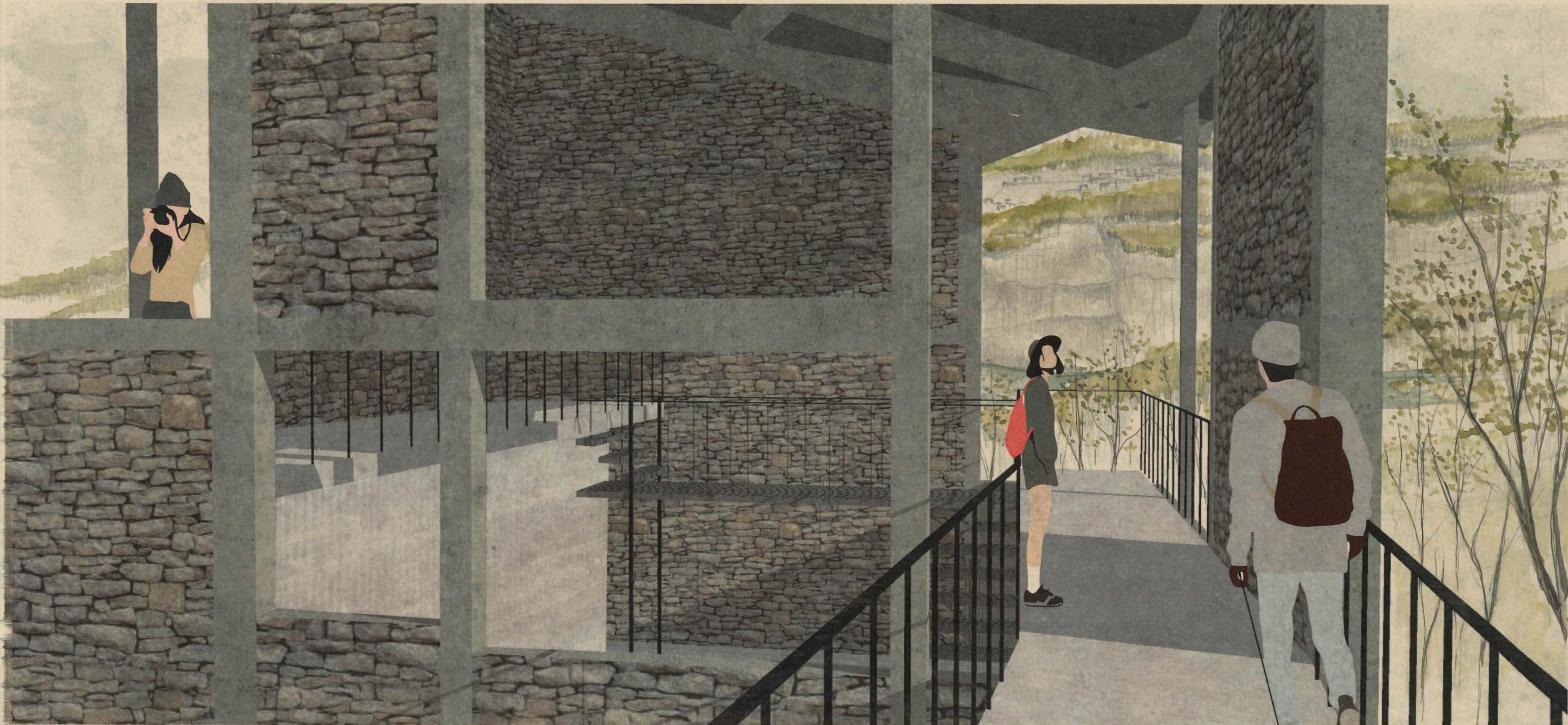 Projet de reconversion d’une tour d’un ancien site d’extraction de grès à Poulseur en Belgique.