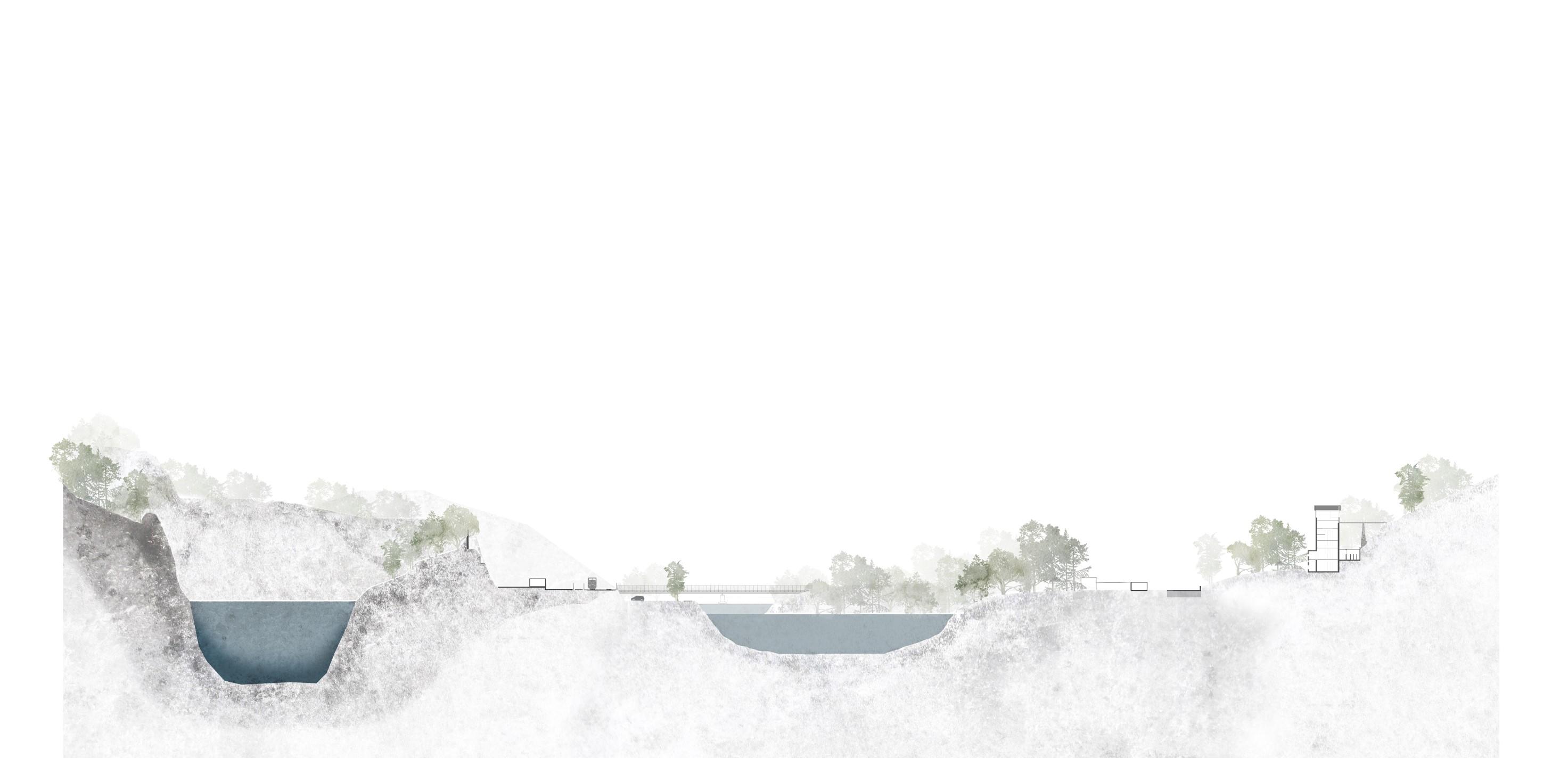Ce projet s’insère dans la continuité du slow tourisme déjà présent et met en valeur les connexions au territoire (sentiers de randonnée, ancienne carrière devenue un bassin de plongée), à l’histoire de ce lieu (ancien site d’extraction de grès) et aux matériaux locaux.