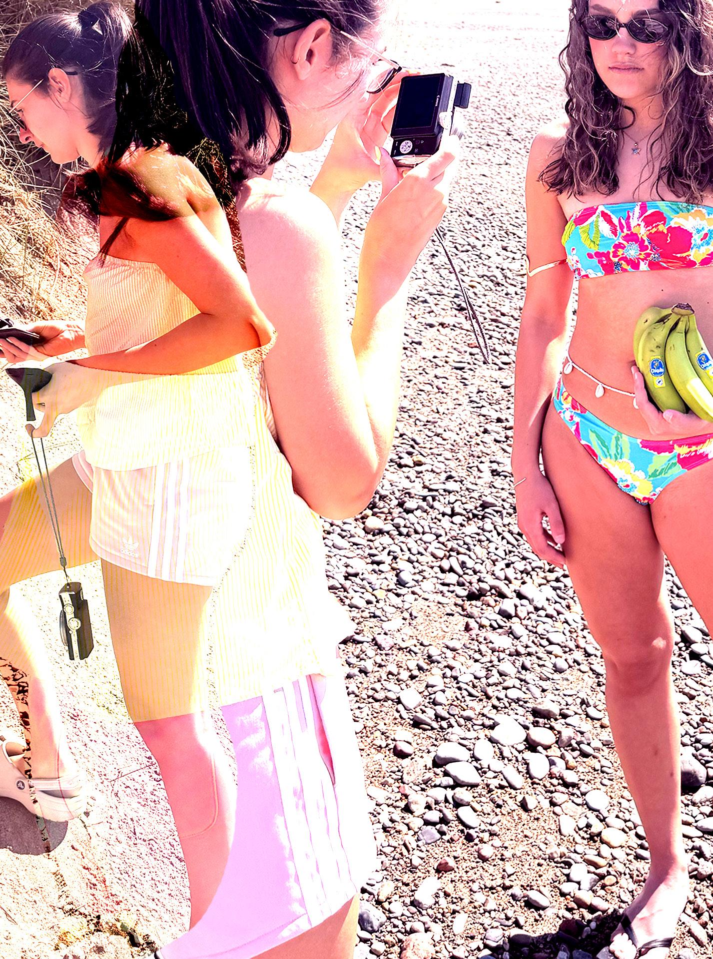 Beachy, fun, colourful, vintage, digital camera, fun, cute, details, bikini, beads, embellishments, sand, sea, rocks, wind, ibiza, 90’s