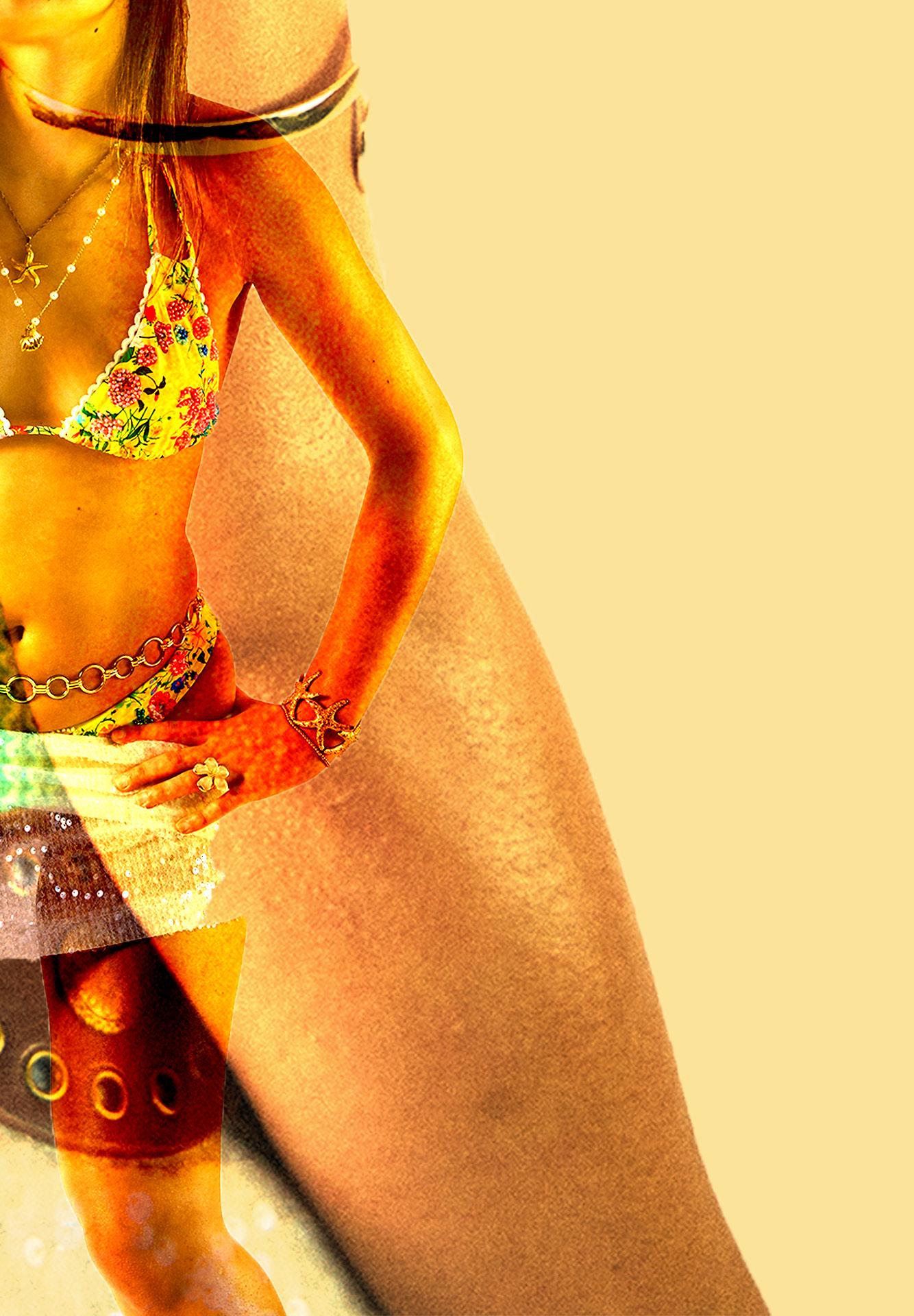 For my bikini shoot, I styled everything with Ibiza fashion in mind, capturing that carefree party energy and vibrant spirit the island is famous for. Think lots of sequins, crochet details, and an effortlessly cool beach-toclub vibe that feels both relaxed and glamorous. I also drew heavy inspiration from the 90s and early 2000s fashion, incorporating nostalgic elements like low-rise cuts, denim, sequins, and fun, playful accessories to bring that retro feel to life. The styling is all about blending glamour with laid-back, sun-soaked energy, creating looks that are as ready for a sunset beach party as they are for a night out in Ibiza’s iconic clubs. This mix perfectly reflects the vibrant, youthful, and dynamic identity of the brand.
