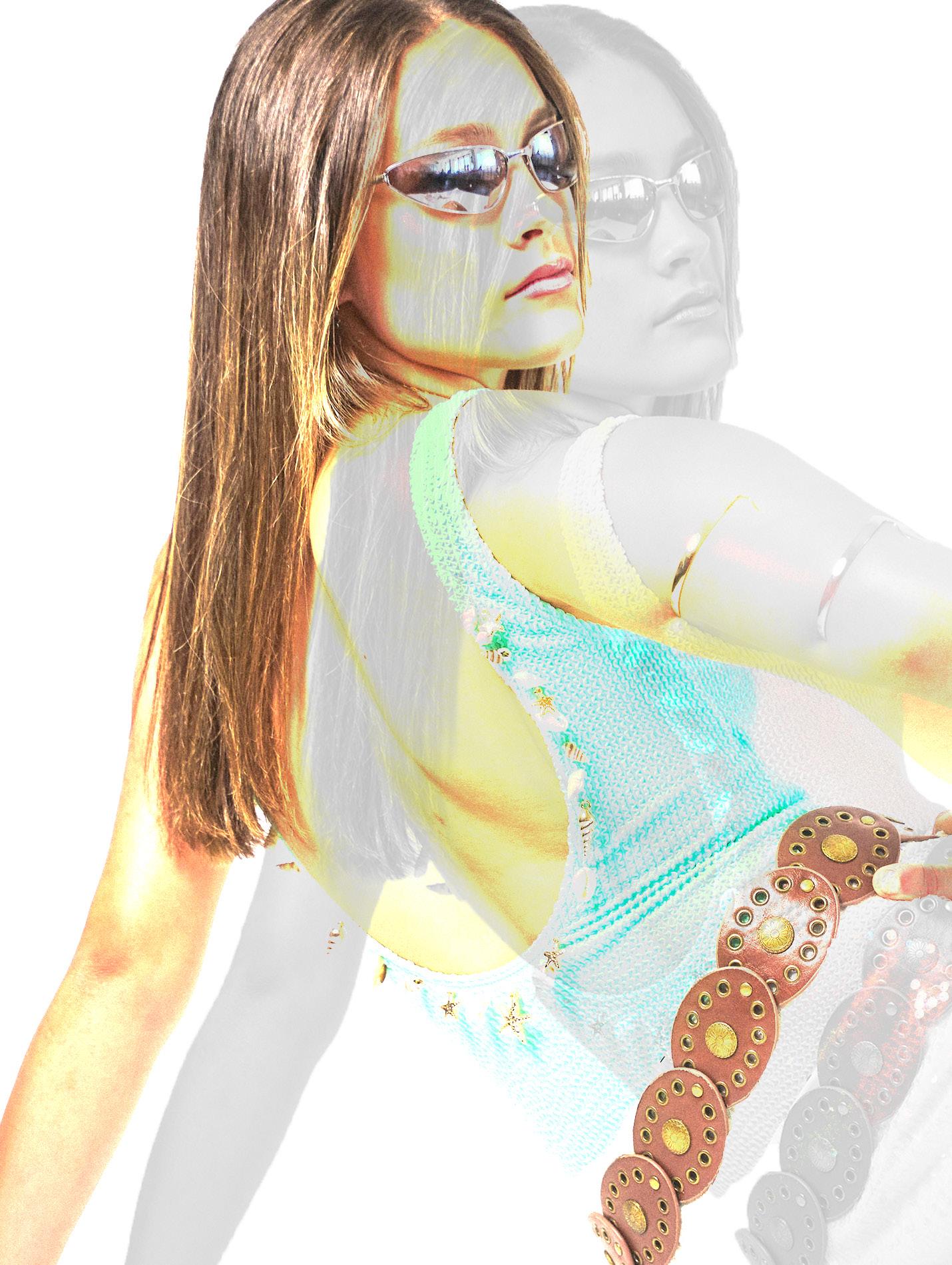For makeup, I wanted to keep the look subtle so that it wouldn’t outshine the bikinis, which are the main focus of the shoot. I opted for a natural makeup base similar to what I used in the location shoot, but with a few key additions to elevate the look for the Ibiza club scene. I added a silver shimmer on the eyes and highlighted her high cheekbones with the same metallic shine, creating a luminous, almost ethereal glow. This silver shine was very popular in the 90s and perfectly complemented the club-inspired styling, adding a touch of glamour and edge without overwhelming the overall aesthetic. The result was a fresh yet bold makeup look that enhanced the mood and energy of the shoot while keeping the swimwear front and centre.