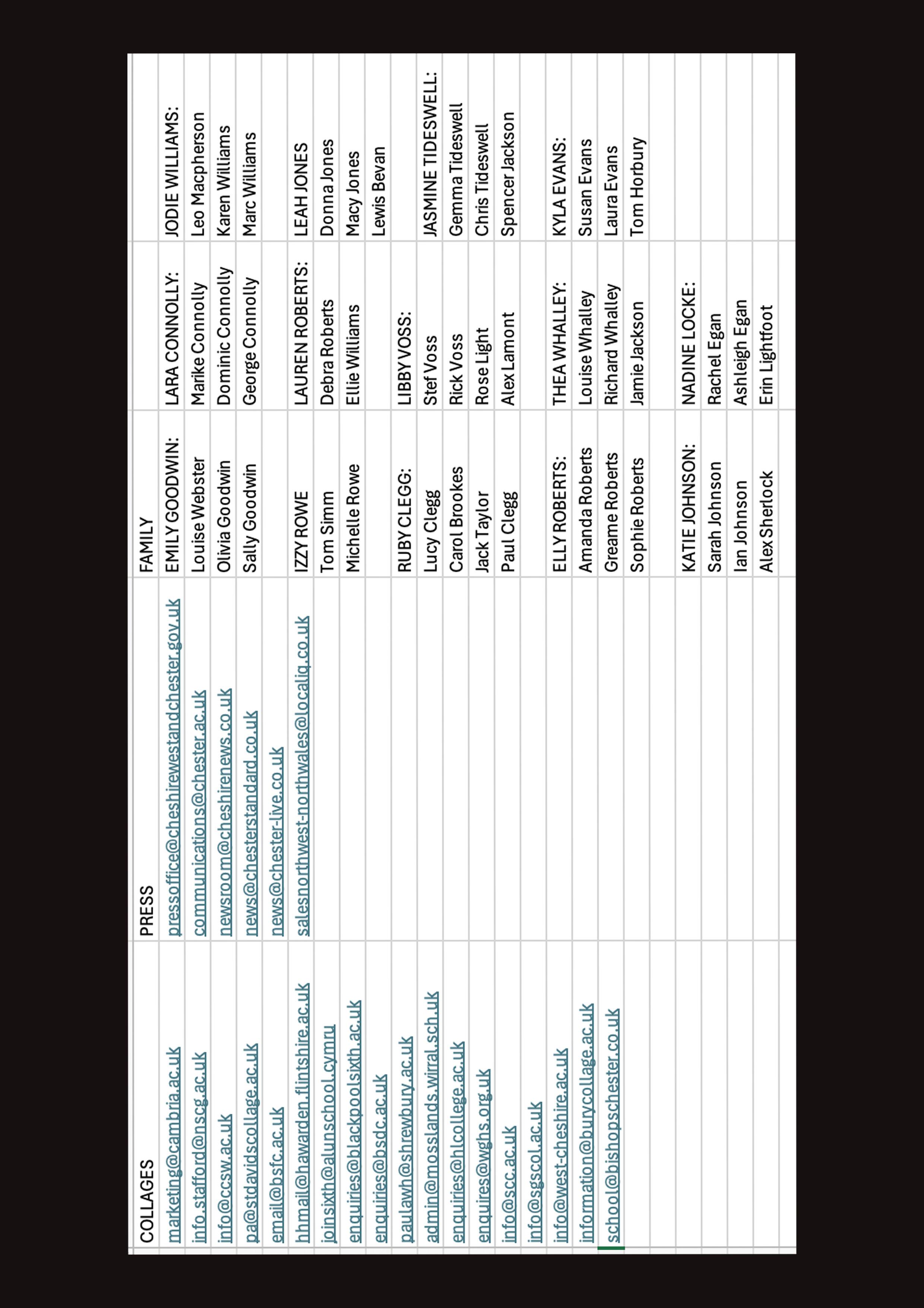 After resolving the crossover between job roles, I finalised four key KPIs as part of my PR responsibilities. One of my main KPIs was to manage the guest list for friends, family, as well as external contacts such as colleges and sixth forms. This involved liaising with my fellow students to confirm who they were inviting to the event, as each student was allowed to bring up to three guests. I also gathered information on which college or sixth form each student had previously attended, so we could extend formal invitations and promote the event to relevant educational networks.