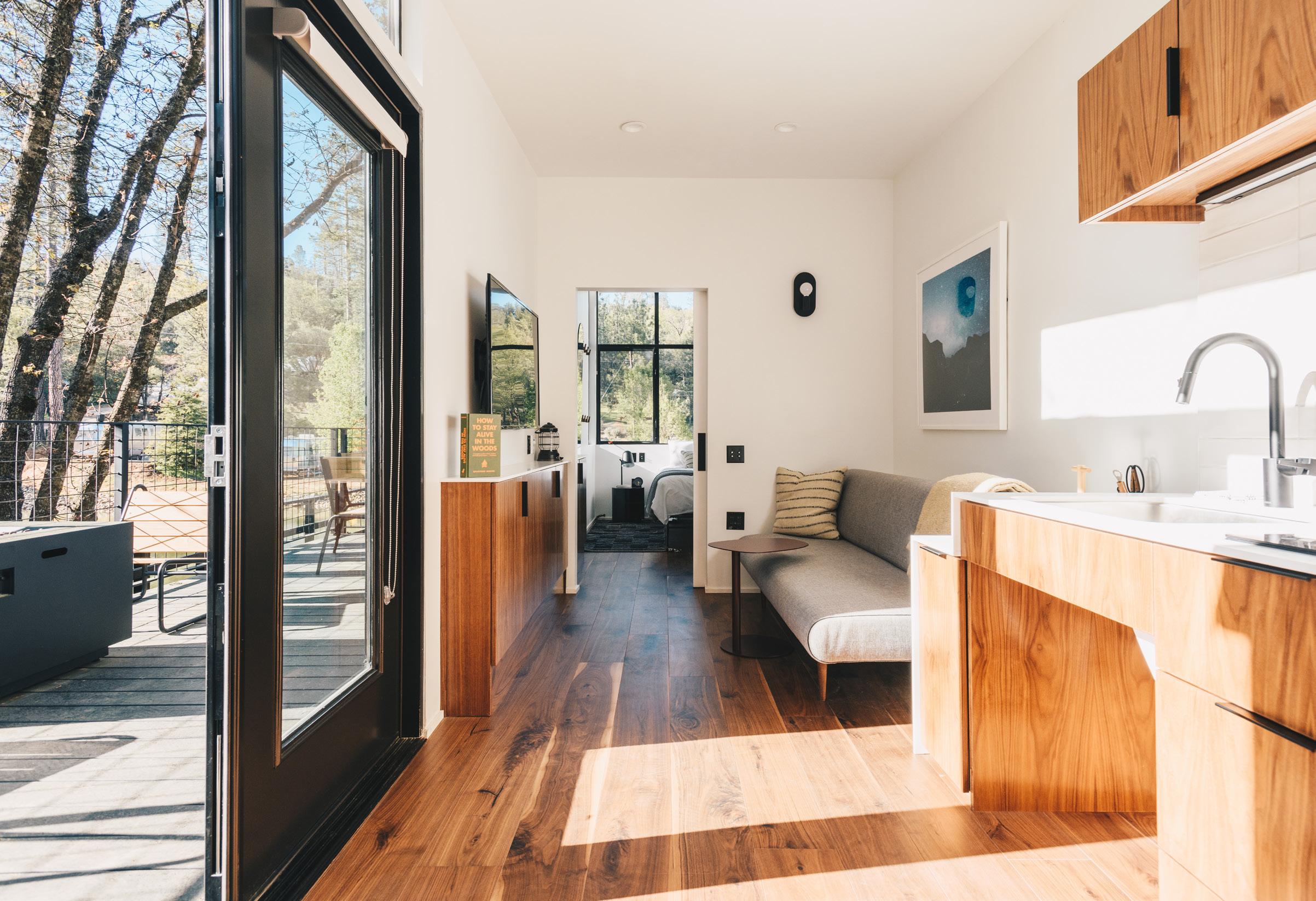 AutoCamp, a unique and luxurious camping experience, draws inspiration from “the wanderlust of camping and the great American road trip.” Largely referencing an American icon, the Airstream trailer, this particular project was sought after to create a universal experience and provide accessibility. The unit is able to comfortably accommodate a wheelchair to ensure that everyone can enjoy the newfound Airstream. Each is equipped with queen-size beds and soft linens; modern, sleek bathrooms with walk-in showers and vanity sinks; kitchenettes; and flat-screen TVs with cable and built-in sound systems. Among these lavish trailers is a central hub where all AutoCampers can experience local food and wine, mingle, or relax by the fire pits. With a timeless midcentury modern design, these units uphold the classic Airstream experience representing freedom and direct connection to the outdoors.