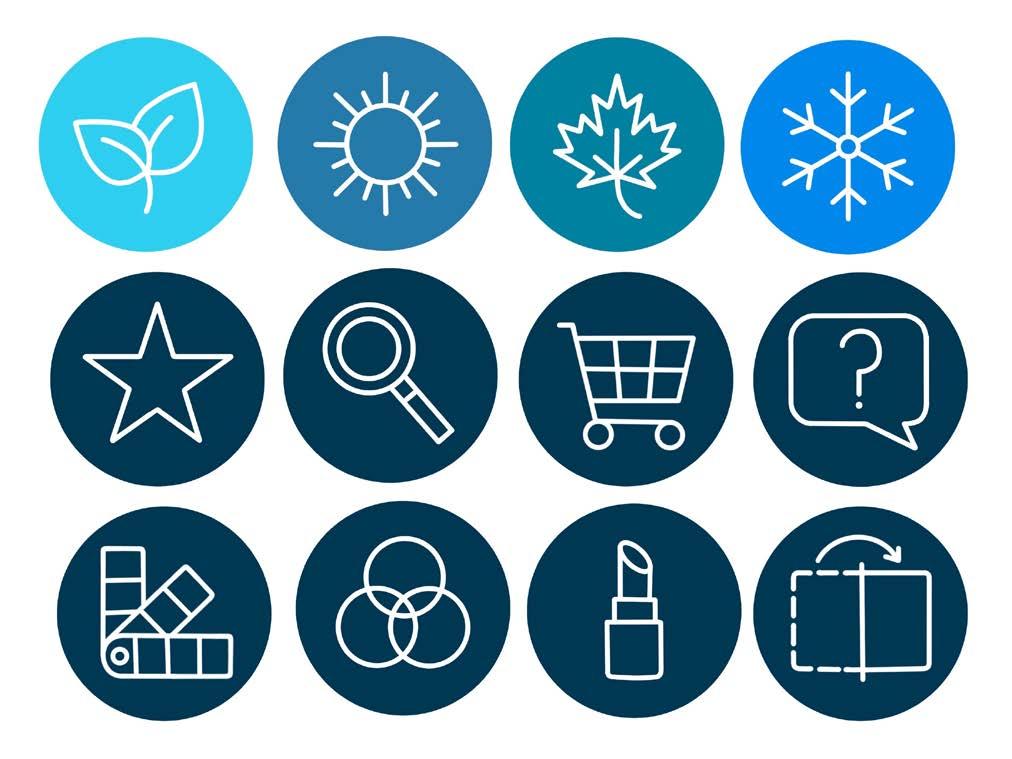 This seasonal color wheel was designed to show the relationships between the 12 different subseasons varying in temperature (warm vs. cool) and intensity.