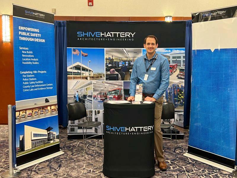 This booth display was designed and printed to showcase Shive-Hattery’s expertise in public safety and fire station design at conferences.