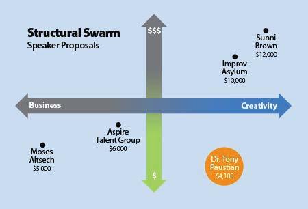 The Structural Swarm Infographic showed how price and presentation topic influenced speaker choice for an employee event.