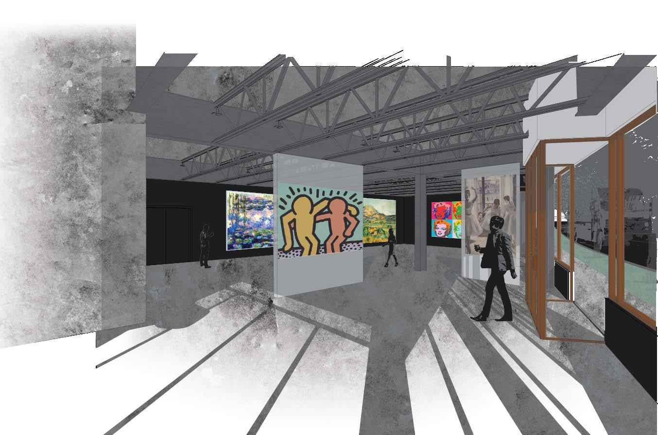 One of the things I had the most fun with was selecting art for the interior spaces. Celine and I decided that it would be fun to select famous French and American art to reflect our partnership on the project. We got a chuckle in the final review as the jurors and our class spotted the priceless paintings by Monet, Warhol, Degas, etc.